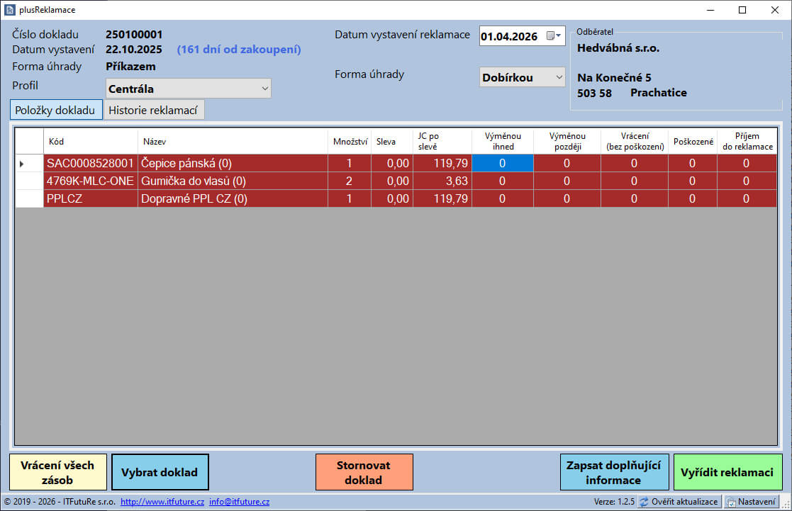 - Nová funkce - Lze nastavit tisk původního dokladu při vyřizování reklamace