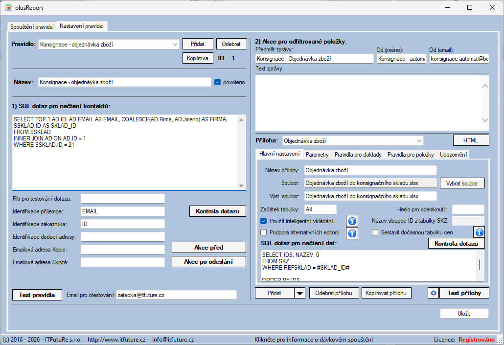 - Nová funkce - Přidána definice pro kopii a skrytou kopii odběratele emailu